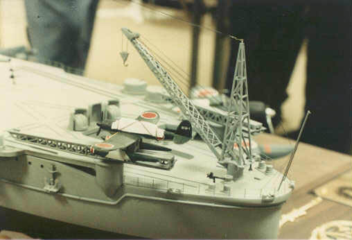Here are pictures of David's 1/200 scale IJN Yamato. Yamato sails past the Great White Swan Fleet. Yamato cruises past on the pond. Aft port shot of superstructure, radar, small platforms, railings, stack cap & other details scratchbuilt. Crane w/ scratchbuilt boom, working lanyard on flagstaff, misc. cast brass details. Port side of superstructure.